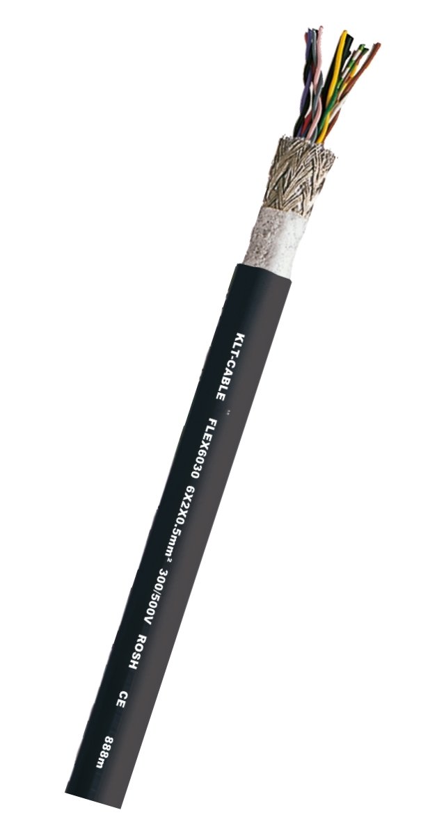 is a continuous flexible twisted pair PVC data cable for cable energy chains with integral copper shielding and a small bending radius. This energy chain cable is recommended for use in wood processing and packaging machinery, assembly lines, and automated plants.